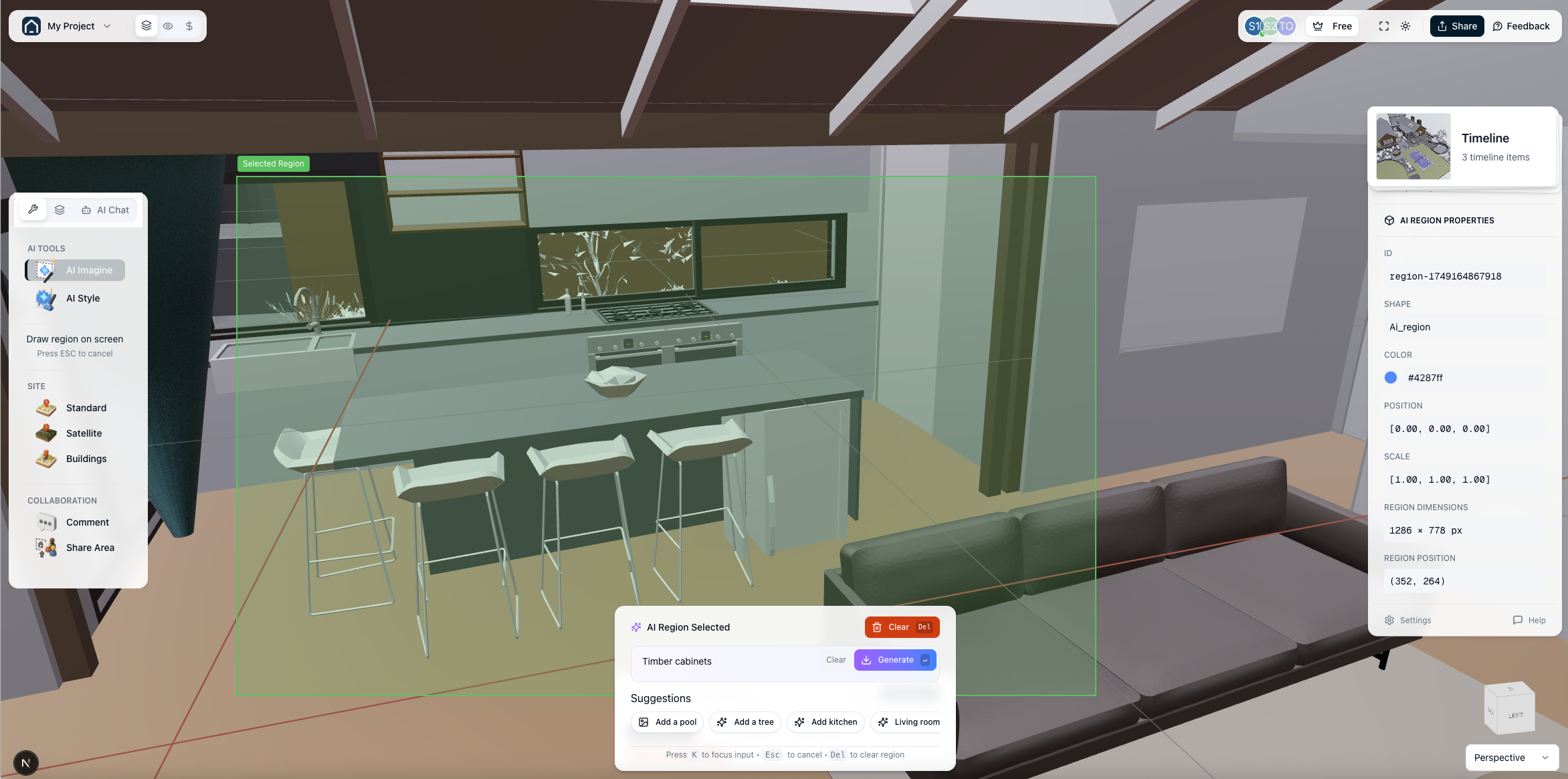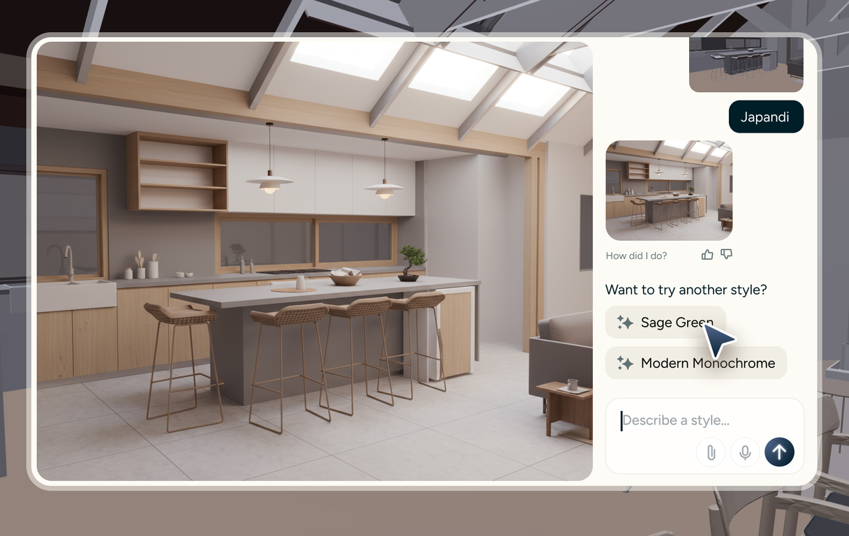 AI powered ideation tools to help you explore your ideas directly on top of your 3D house model.
